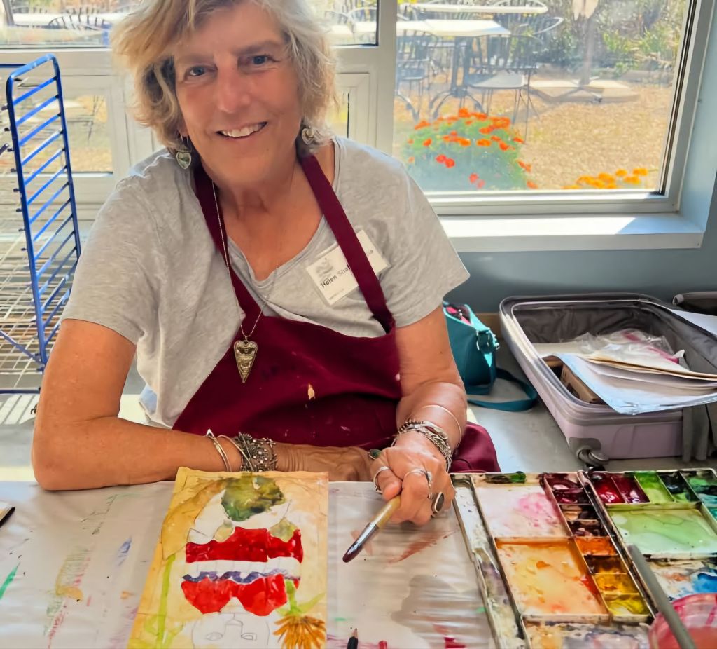 Helen visits the ranch twice a year with her students. She’s known for her patient teaching style and colorful paintings. Helen is a renown watercolorist and illustrator.